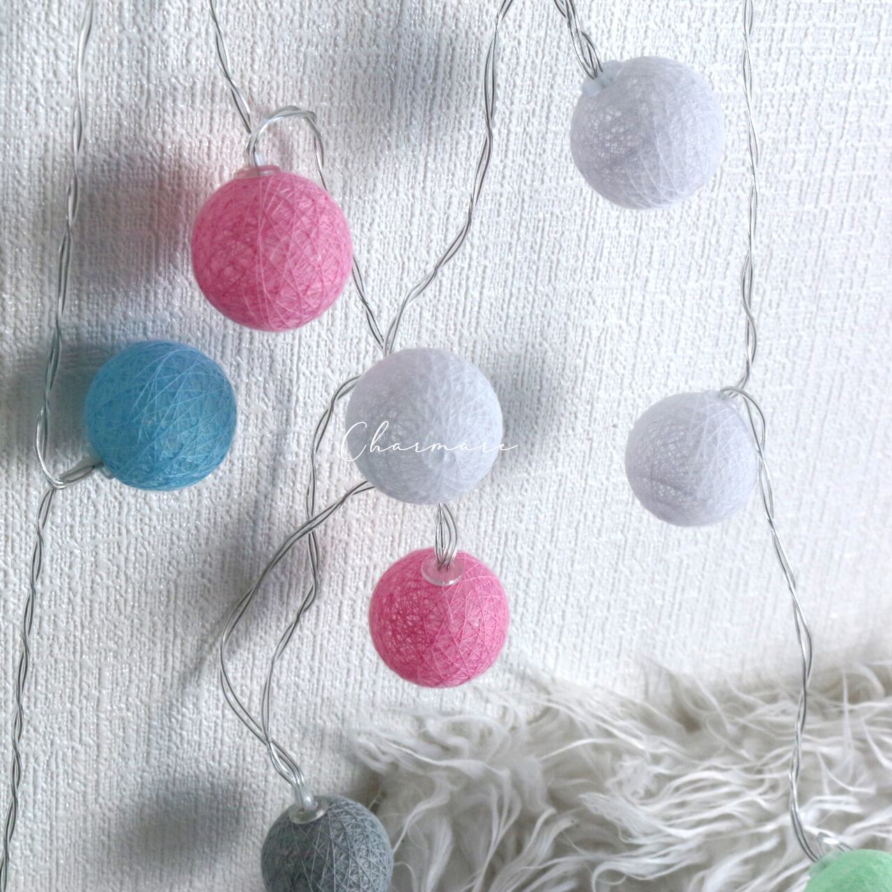 LEDライト【マルチカラー】コットンボールイルミネーション2.2m イルミネーション 間接照明 インテリアライト ディスプレイ 装飾 キッズルーム 寝室 USBライト 電池 | Charmare シャルマーレ /Home家具・インテリア