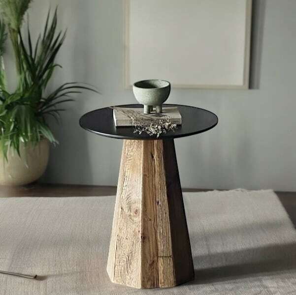 力強く美しい天然木の1本脚テーブルは